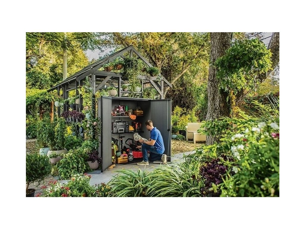 Keter Cortina Alto je ideální řešení pro každého, kdo chce bezpečně a přehledně uložit zahradní i domácí vybavení. Stylový vzhled, praktické funkce a dlouhá životnost – to vše bez nutnosti údržby.