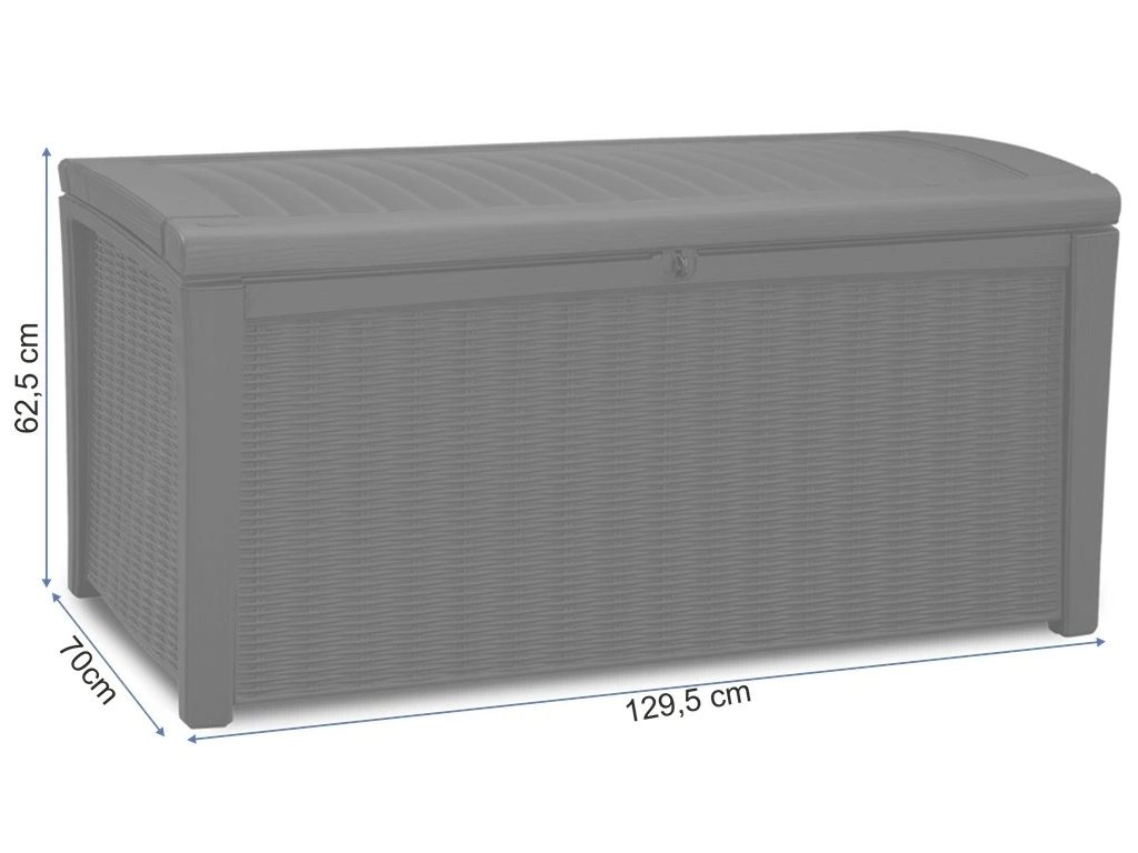 ✅ Hlavní výhody: Objem 270 litrů – ideální pro uskladnění polštářů, dek, hraček, grilovacího náčiní nebo nářadí Atraktivní ratanový design – stylový vzhled v grafitově...