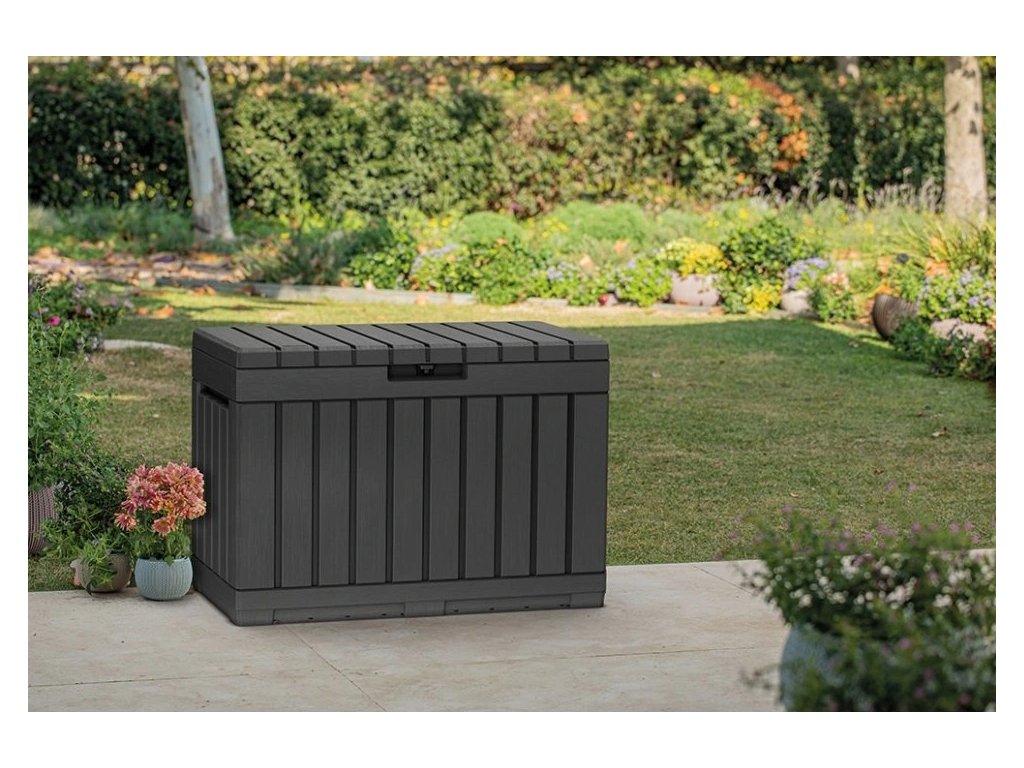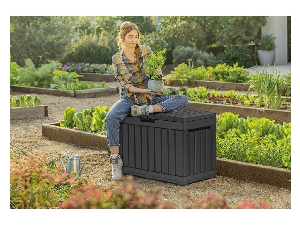 Zahradní úložný box Keter Kentwood 190 l – grafitový, s možností sezení